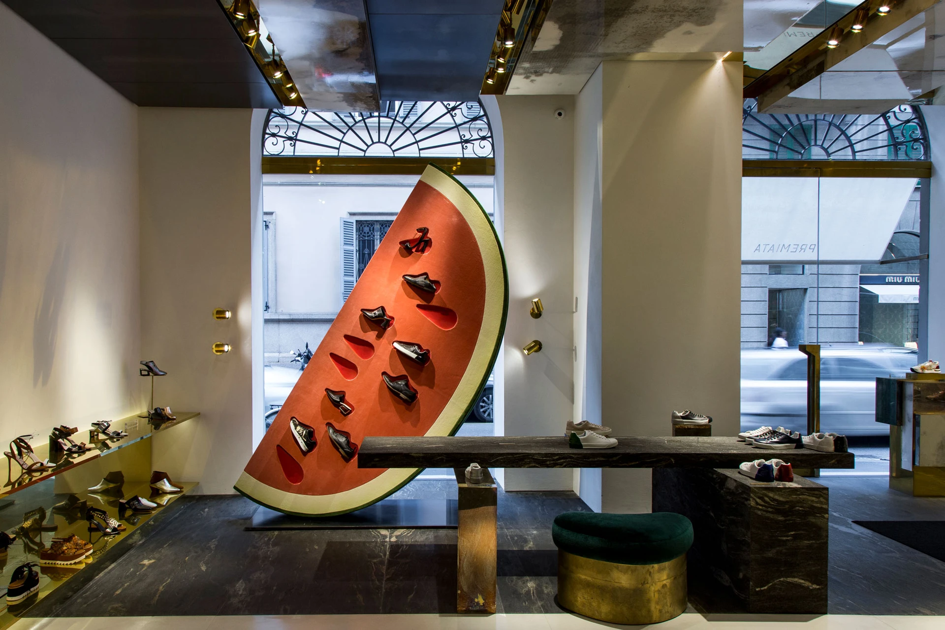 Например, для витрин продуктовых магазинов нужно делать красивые муляжи, потому что продукты быстро выгорают на солнце и вообще портятся. Витрина — это театр. Должно быть красиво, целостно и интересно. Вовсе не обязательно демонстрировать реальные товары, скорее даже наоборот.