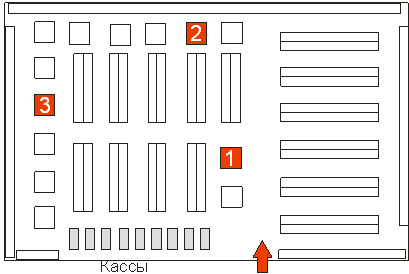 Если один и тот же продукт размещен в торговом зале в трех позициях (см.схему), то внимание покупателей к нему будет не одинаковым. В позиции 1 покупатели чаще всего быстро берут товар и кладут в корзинку, меньше всего раздумывая. В позиции 2 больше всего останавливаются, берут товар в руки и читают упаковку. А в позиции 3 меньше замечают, меньше останавливаются. Покупают с такой же частотой, что и в позиции 2, но меньше берут в руки и рассматривают. Позиция 1 является лидером по «проскакиванию мимо», но если уж покупатель остановился у этого места, то именно в этой позиции в 3 раза чаще, чем в позициях 2 и 3 совершаются «необдуманные покупки».